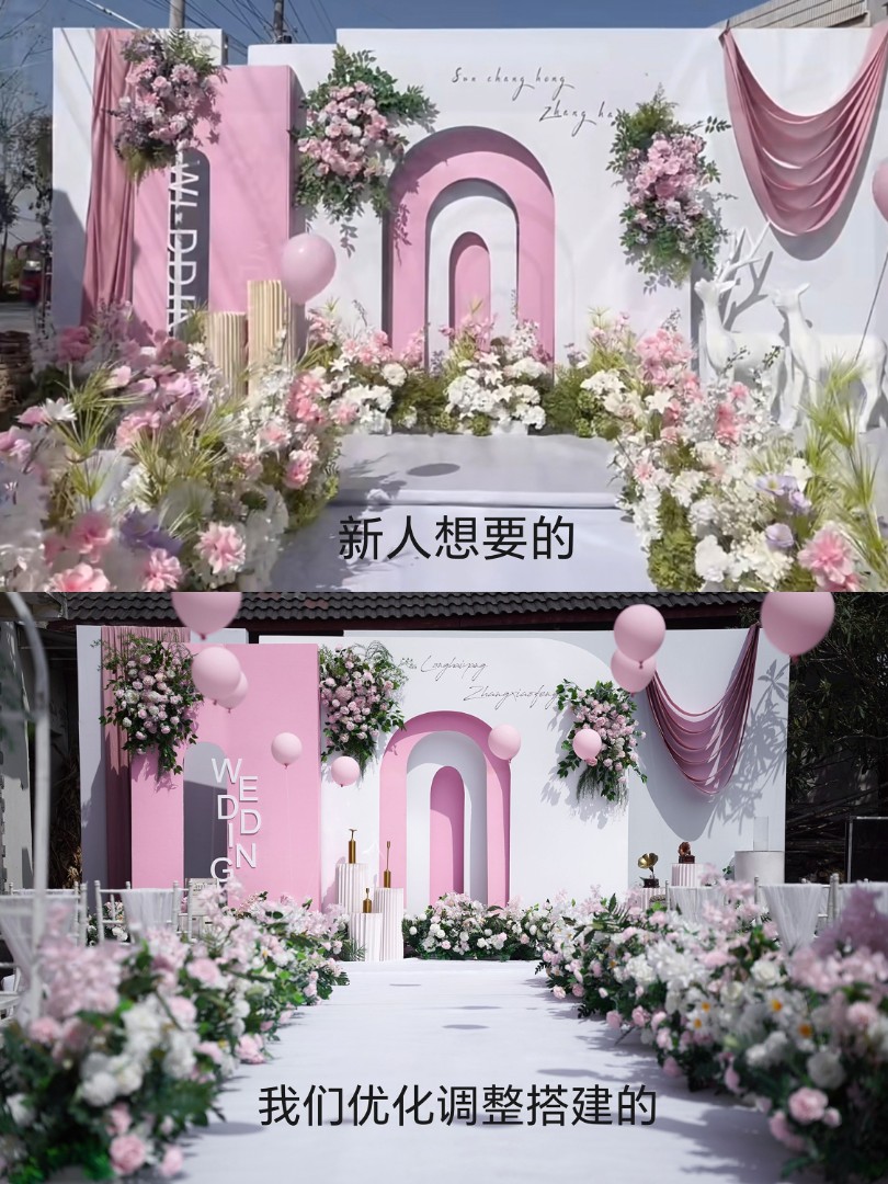 室外粉色婚礼,根据要求调整花艺,更清新自然