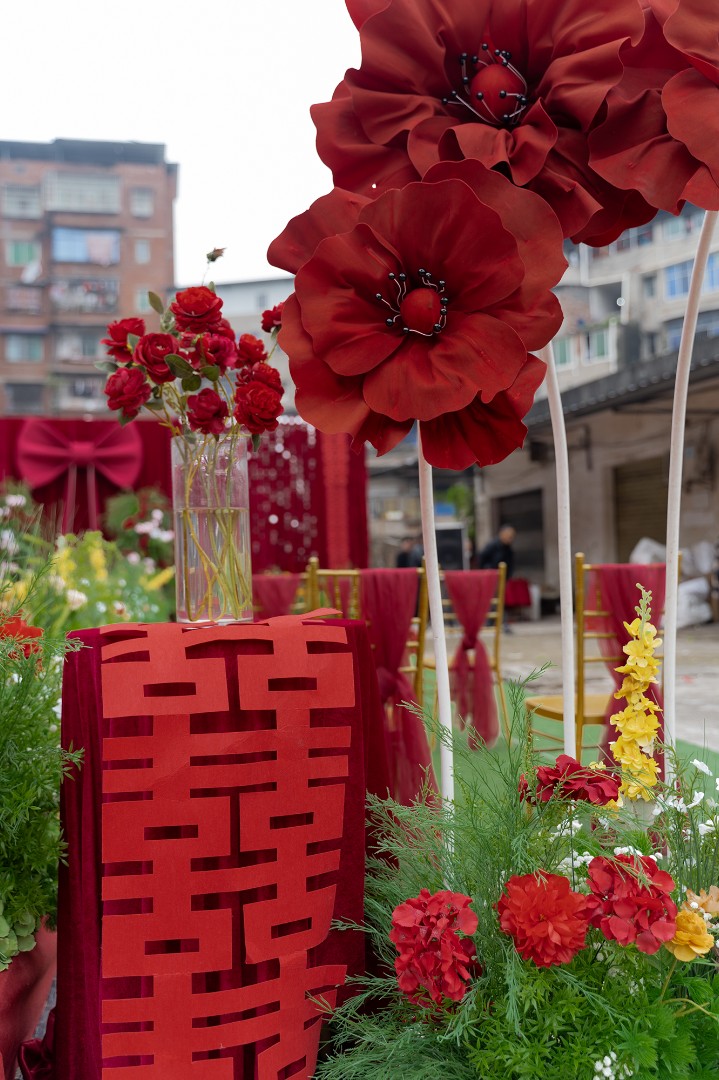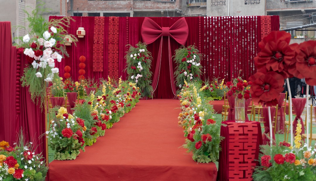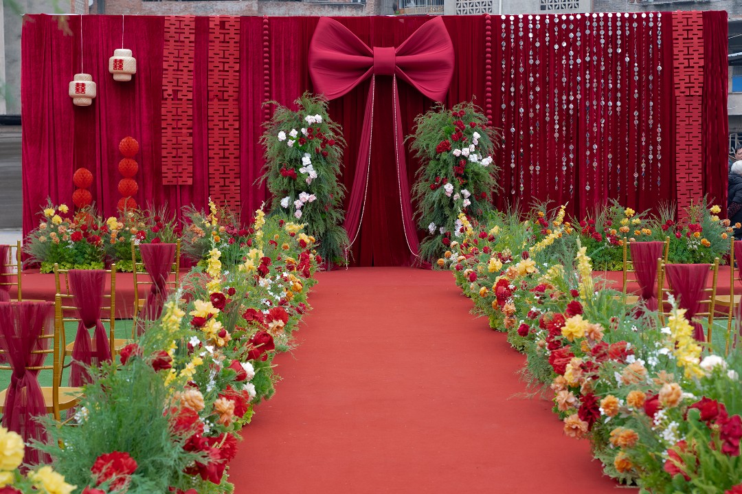 广兴镇农村4米高红色婚礼