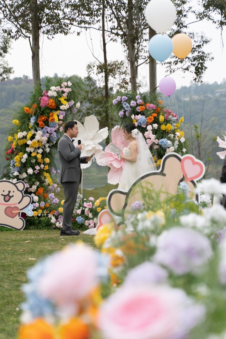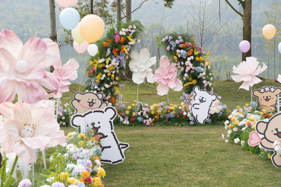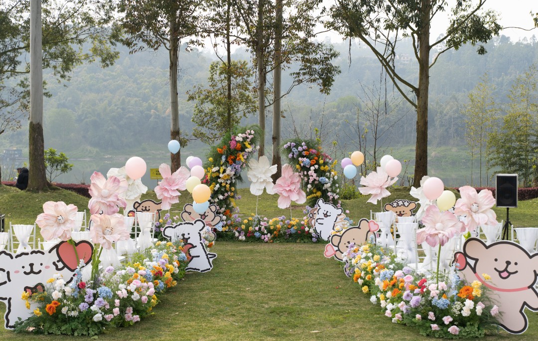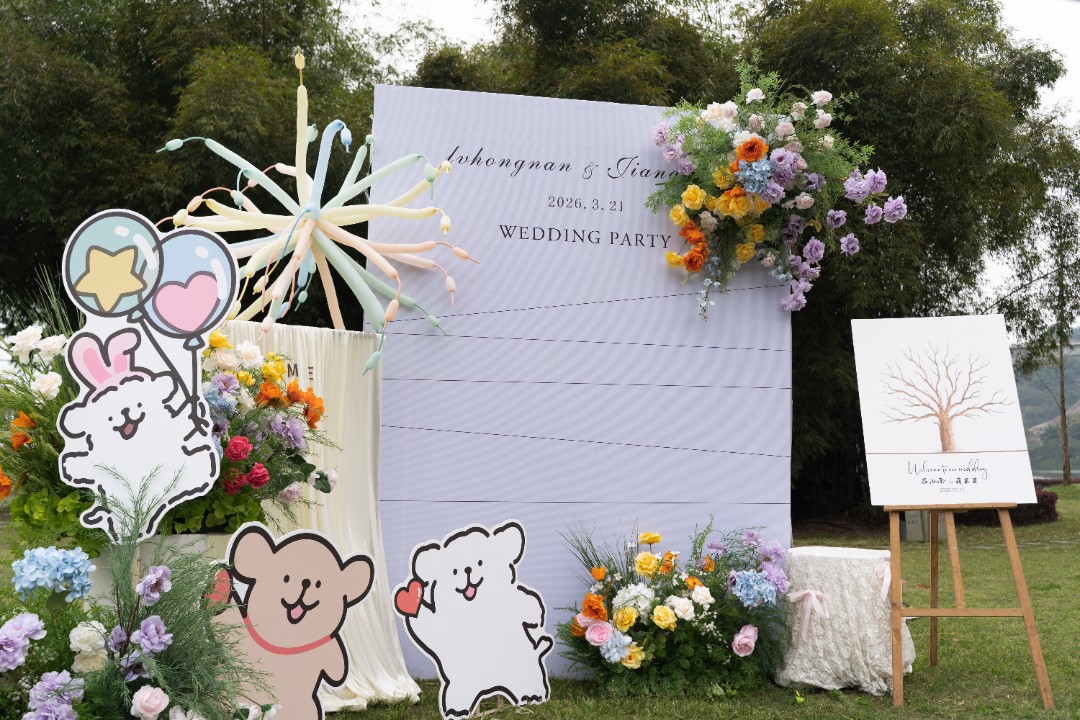 浔溪江南多巴胺线条小狗草坪婚礼